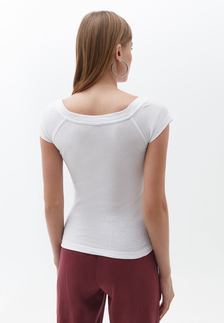• Bayan Beyaz Pamuklu Esnek Tişört