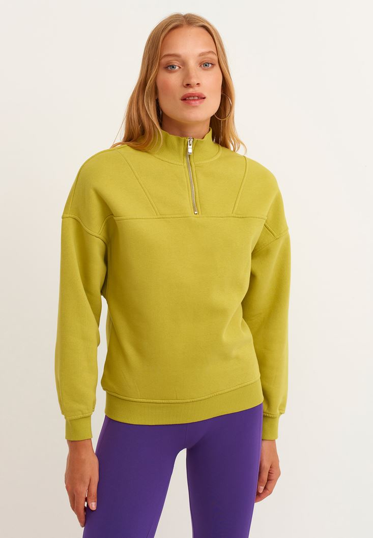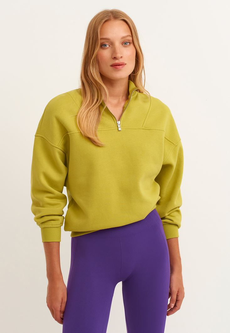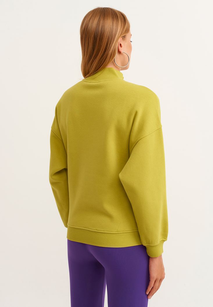 • Bayan Yeşil Pamuklu Fermuar Detaylı Sweatshirt
