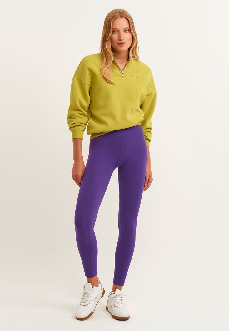 Pamuk karışımlı yumuşak sweat doku, fermuarlı yüksek yaka, üst kısmı dikiş detaylı, uzun kollu, kol ucu ve bel kısmı jakarlı, bedene yakın rahat kalıp.