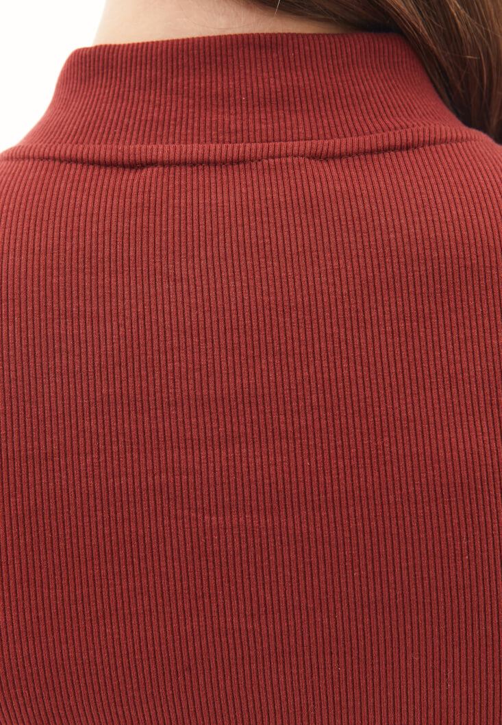 Bordo Pamuklu Fermuar Detaylı Tişört
