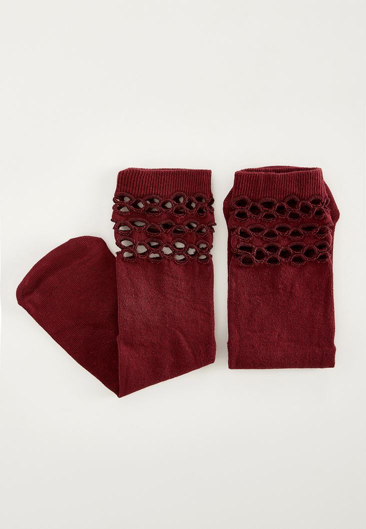Bordo Pamuklu File Çorap