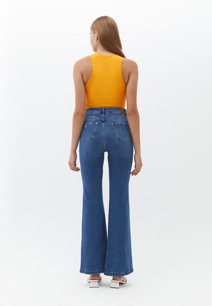• Bayan Mavi Pamuklu Flare Denim Pantolon