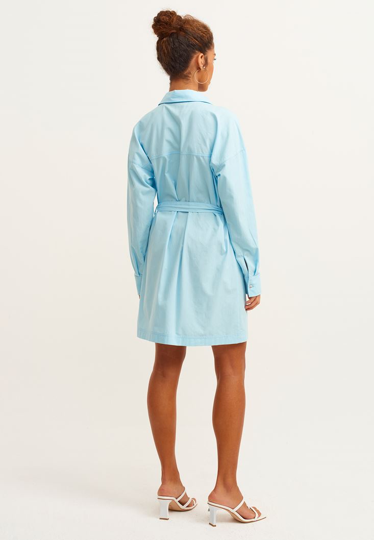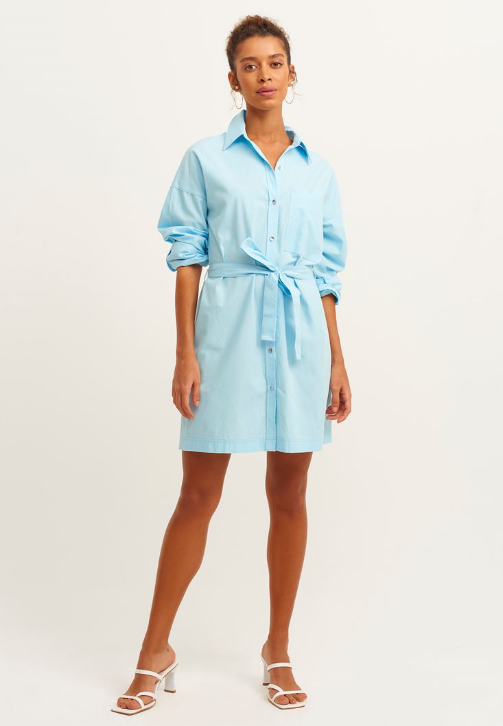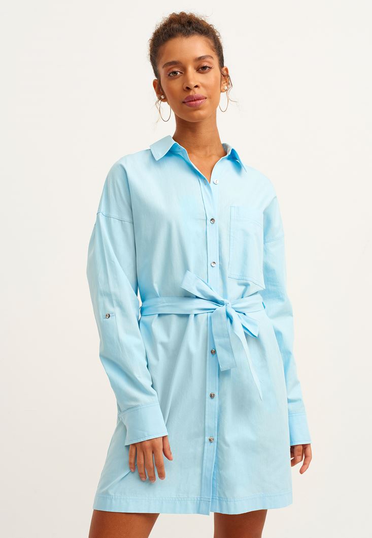 • Bayan Mavi Pamuklu Gömlek Elbise