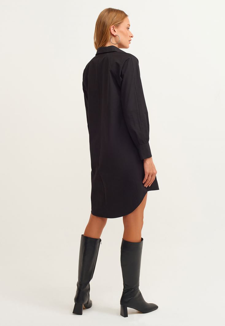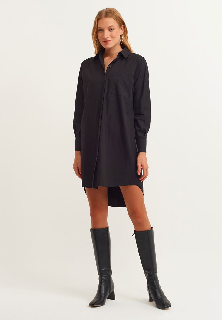 • Bayan Siyah Pamuklu Gömlek Elbise