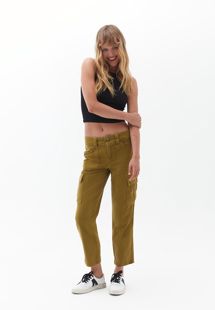 Pamuk karışımlı fitilli doku, bedeni saran esnek fit, halter yaka, crop kesim.