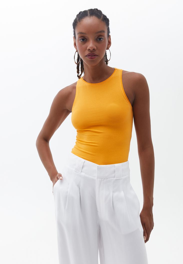 • Bayan Turuncu Pamuklu Halter Yaka Atlet