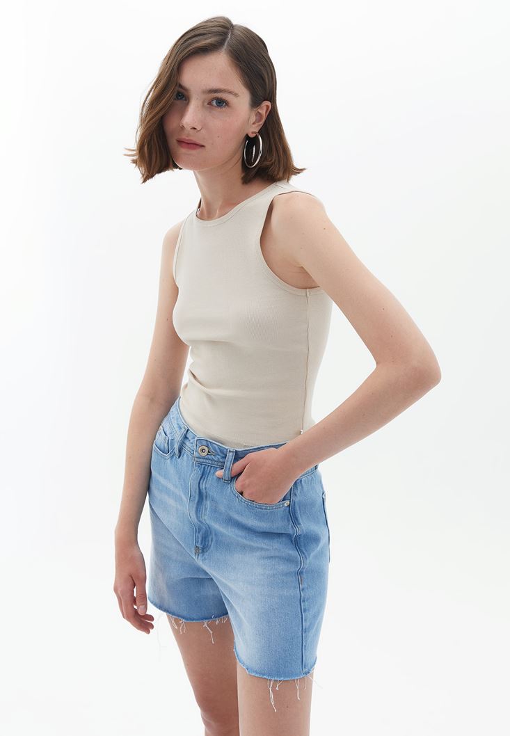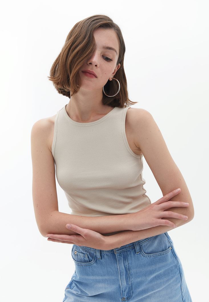 • Bayan Bej Pamuklu Halter Yaka Atlet