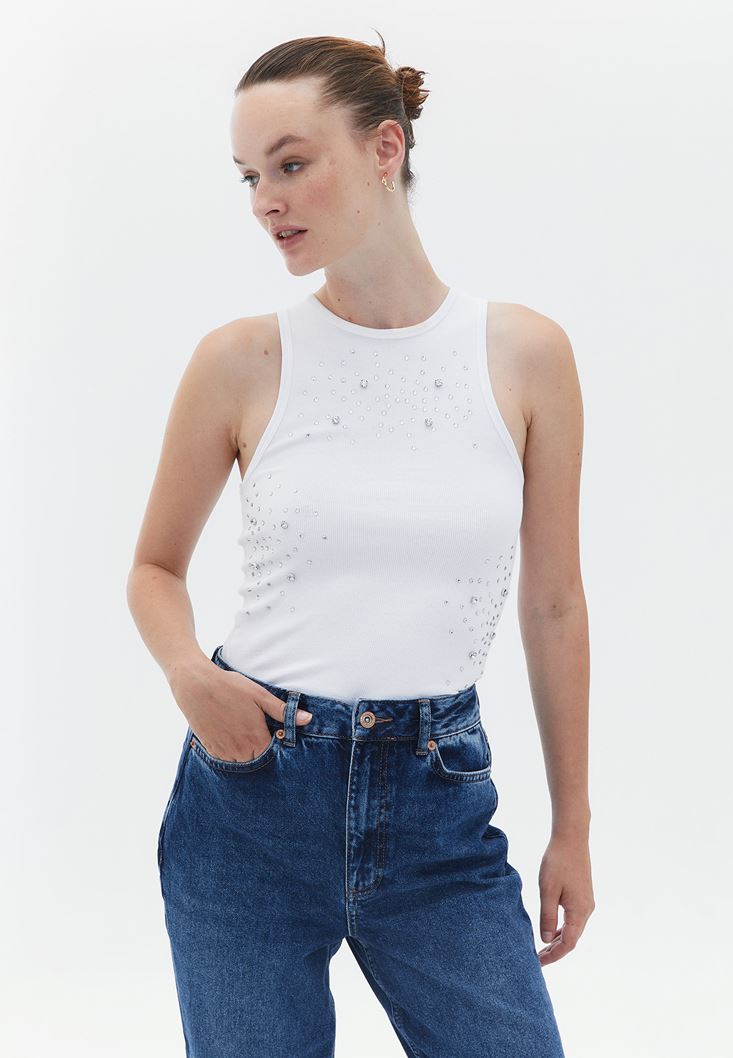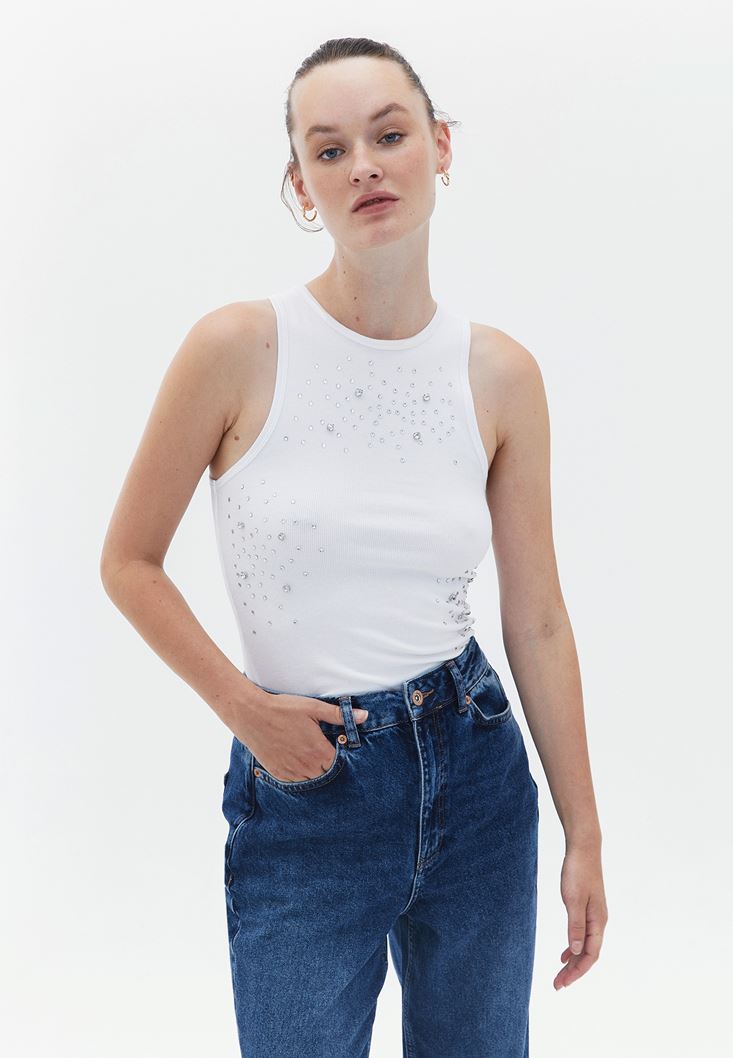 • Bayan Beyaz Pamuklu Halter Yaka Atlet