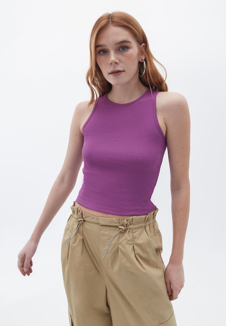 • Bayan Lila Pamuklu Halter Yaka Atlet