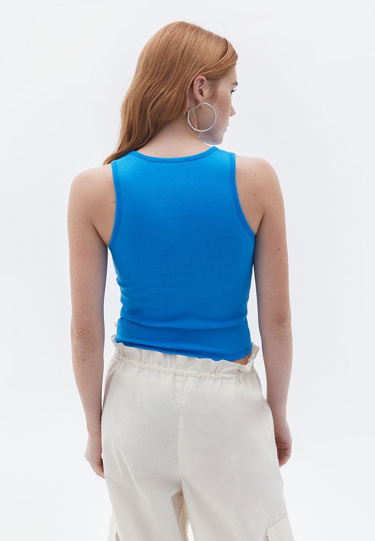 Mavi Pamuklu Halter Yaka Atlet