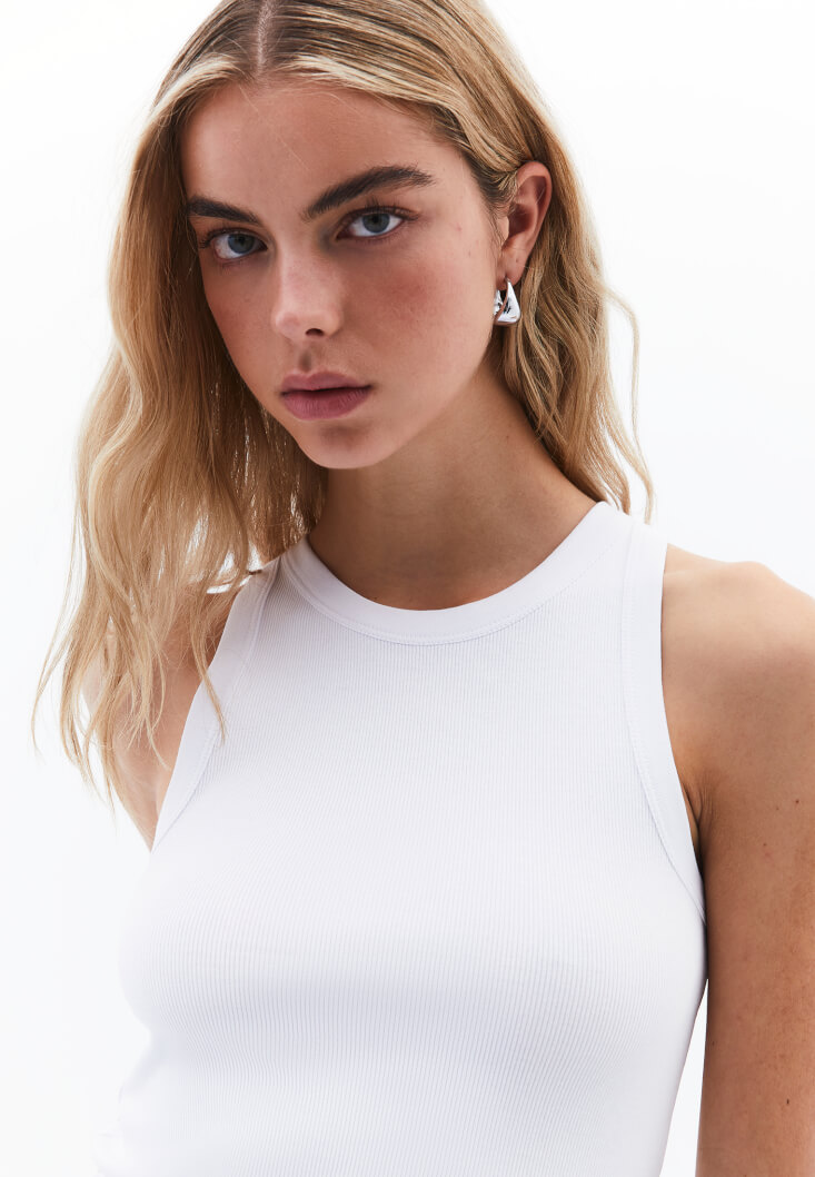 %100 pamuklu yapısıyla gün boyu nefes alabilen konfor sunan bu atlet, halter yaka tasarımıyla modern bir siluet yaratır. Bedene oturan formu sayesinde minimal ama güçlü bir duruş sergilerken, katmanlı kombinlerde de rahatlıkla tercih edilebilir.