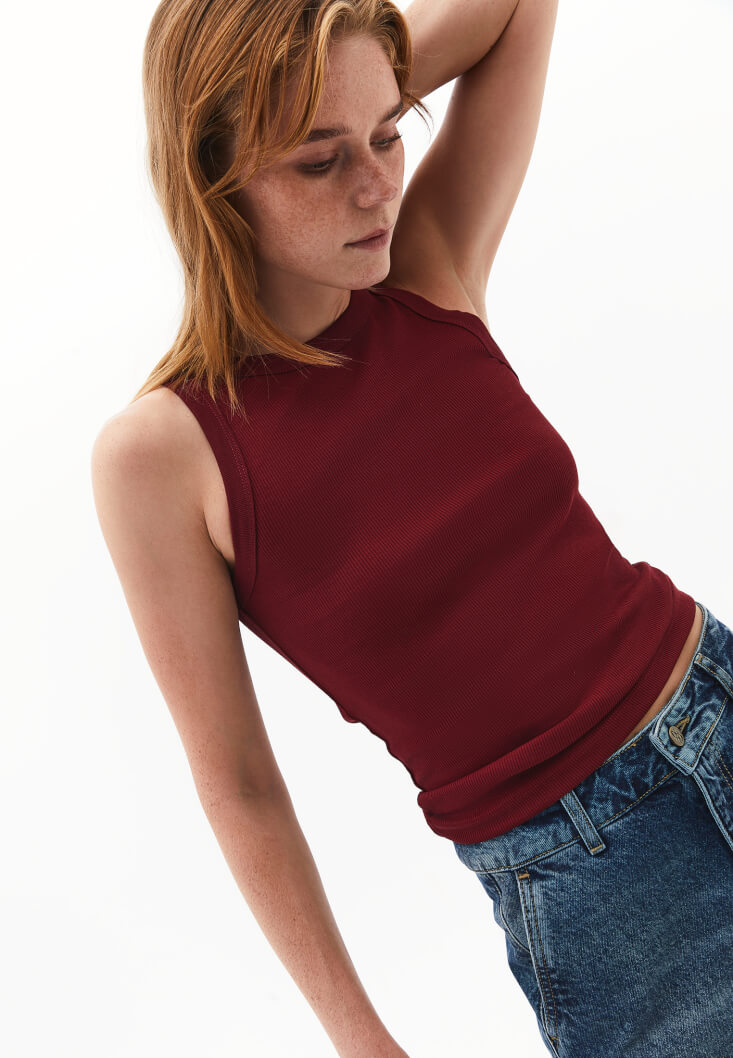 Bordo Pamuklu Halter Yaka Atlet