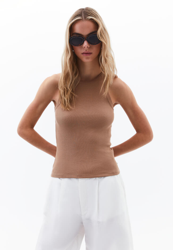 %100 pamuklu yapısıyla gün boyu nefes alabilen konfor sunan bu atlet, halter yaka tasarımıyla modern bir siluet yaratır. Bedene oturan formu sayesinde minimal ama güçlü bir duruş sergilerken, katmanlı kombinlerde de rahatlıkla tercih edilebilir.