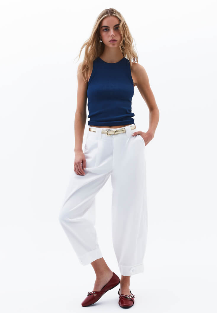Yüksek bel pantolonlar, şortlar ya da eteklerle kolayca eşleşerek yaz stilinize sade ama dikkat çekici bir hava kazandırır.