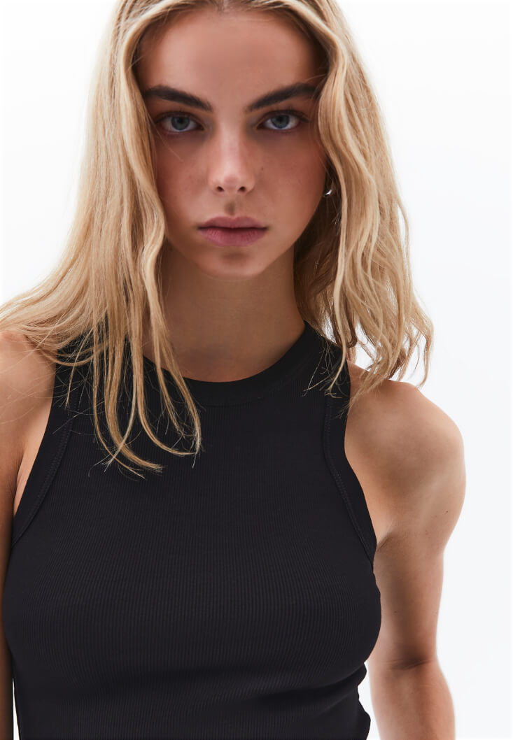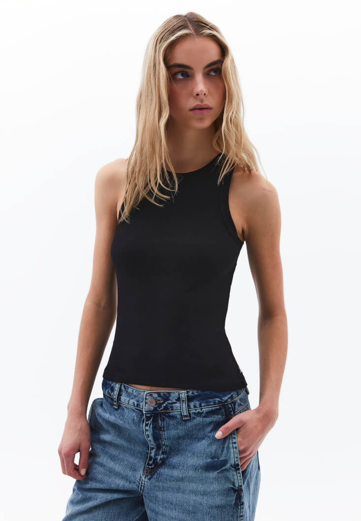 %100 pamuklu yapısıyla gün boyu nefes alabilen konfor sunan bu atlet, halter yaka tasarımıyla modern bir siluet yaratır. Bedene oturan formu sayesinde minimal ama güçlü bir duruş sergilerken, katmanlı kombinlerde de rahatlıkla tercih edilebilir.