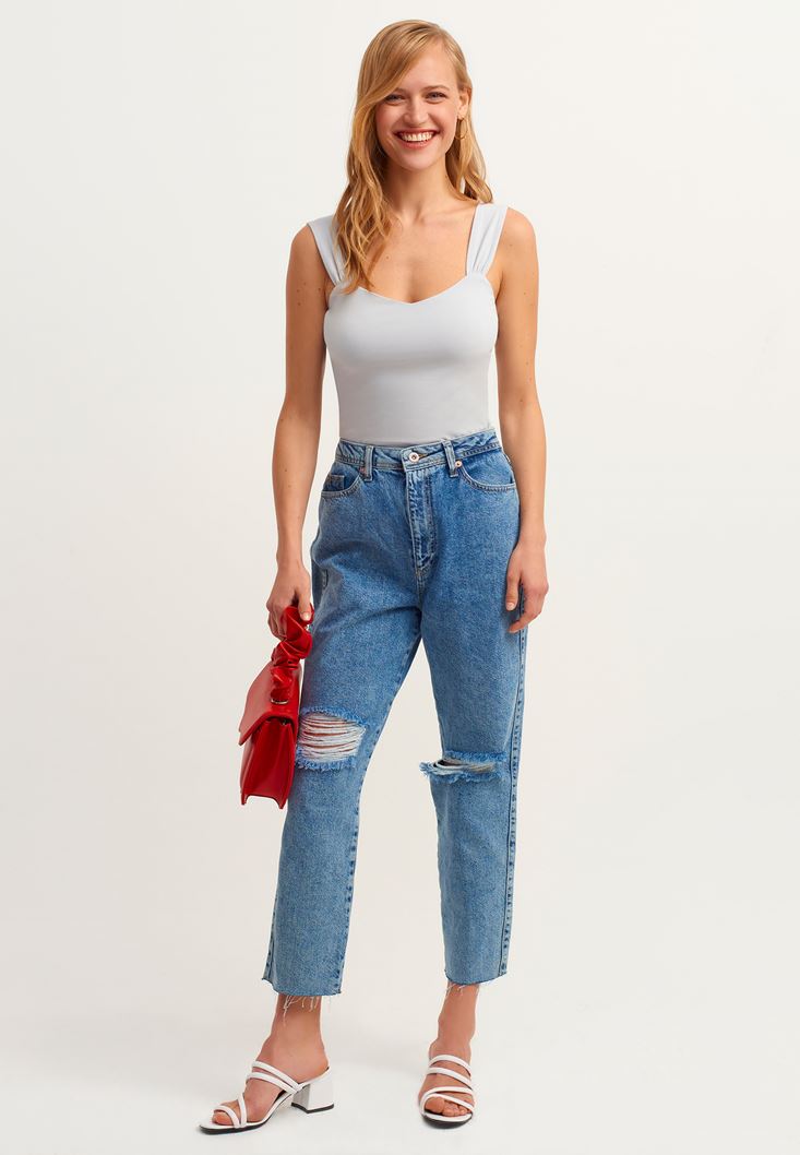 • Bayan Gri Pamuklu Kalın Askılı Atlet