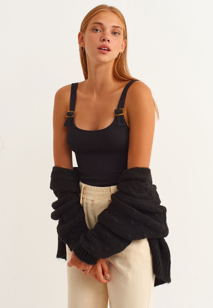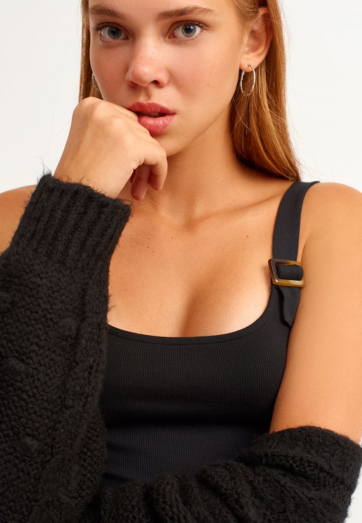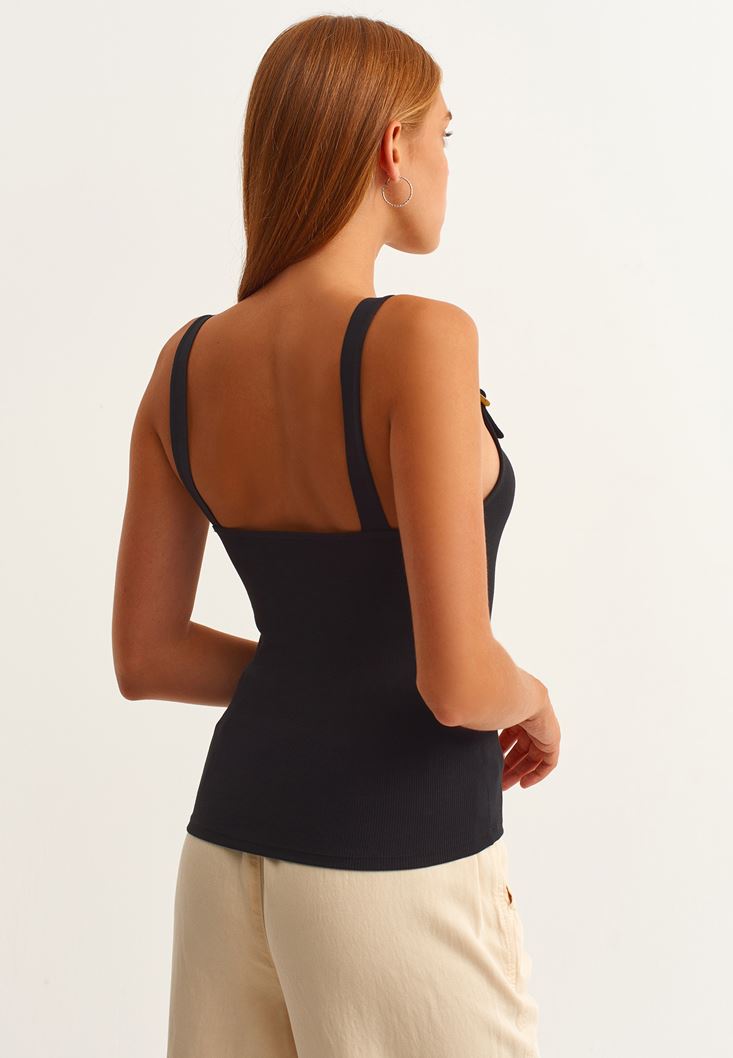 • Bayan Siyah Pamuklu Kare Yaka Atlet