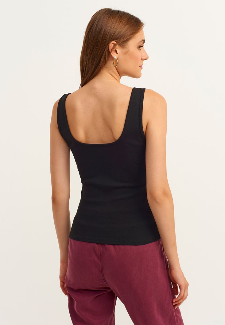 • Bayan Siyah Pamuklu Kare Yaka Atlet