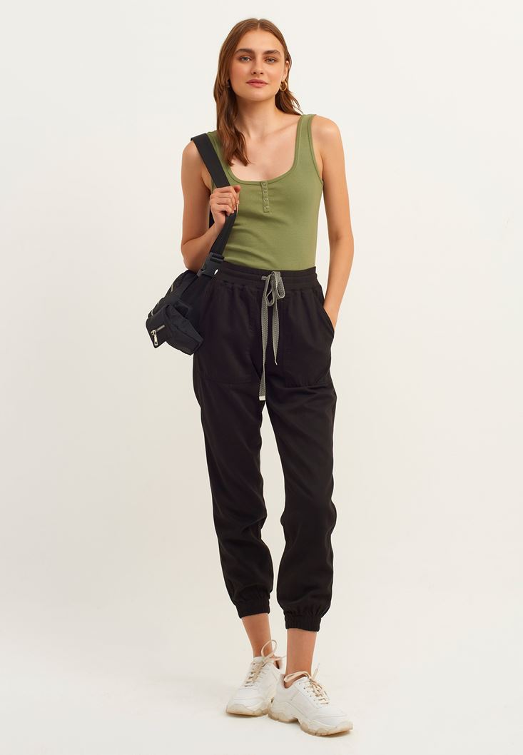 %100 pamuklu doku, bedeni saran rahat kalıp, kare yaka ve yakası çıtçıtlı, standart boy, kalın askılı, sırt kısmı kare kesim.