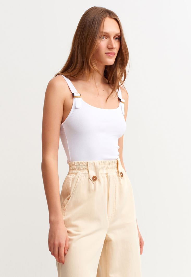 • Bayan Beyaz Pamuklu Kare Yaka Atlet