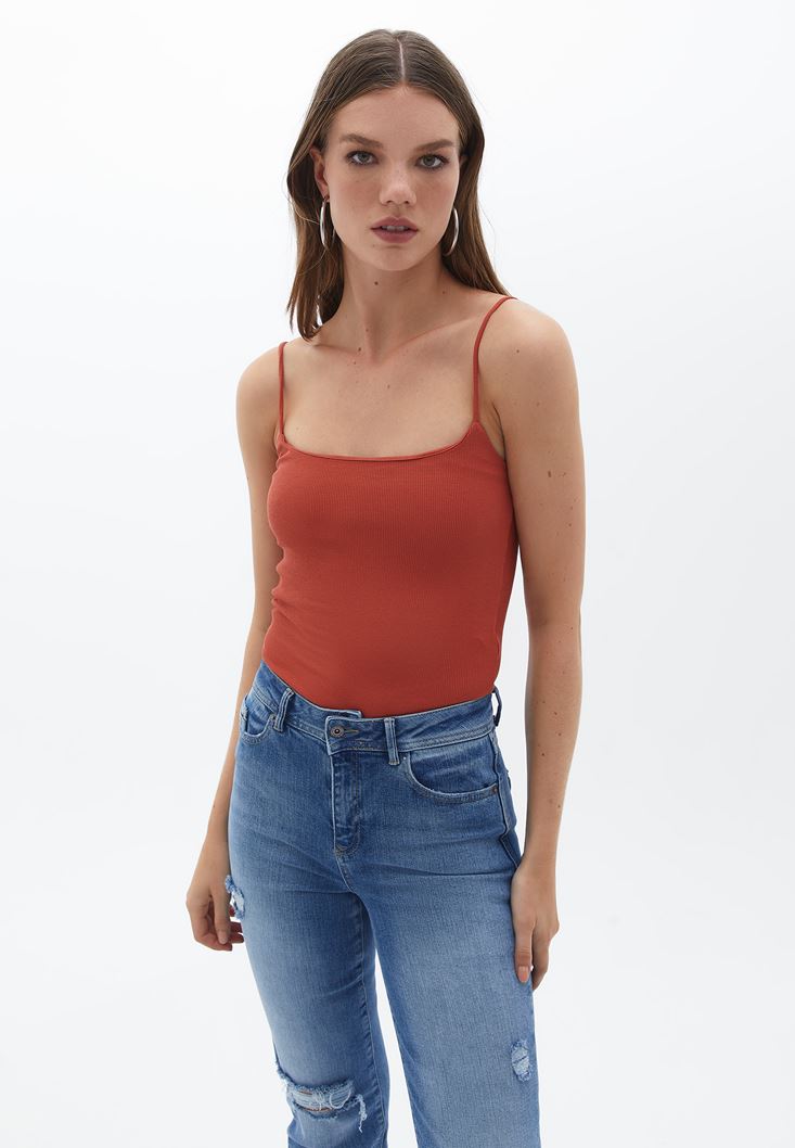 • Bayan Turuncu Pamuklu Kare Yaka Atlet