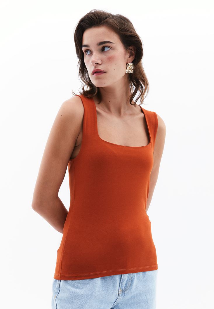 • Bayan Turuncu Pamuklu Kare Yaka Atlet