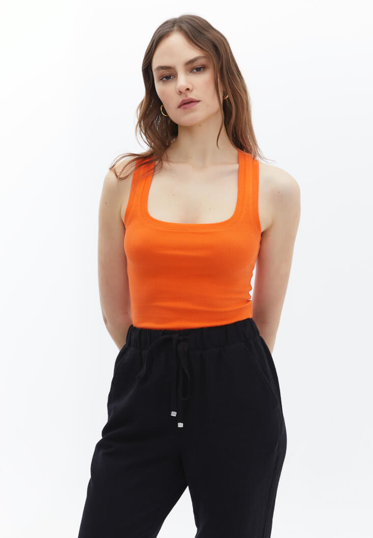 • Bayan Turuncu Pamuklu Kare Yaka Atlet