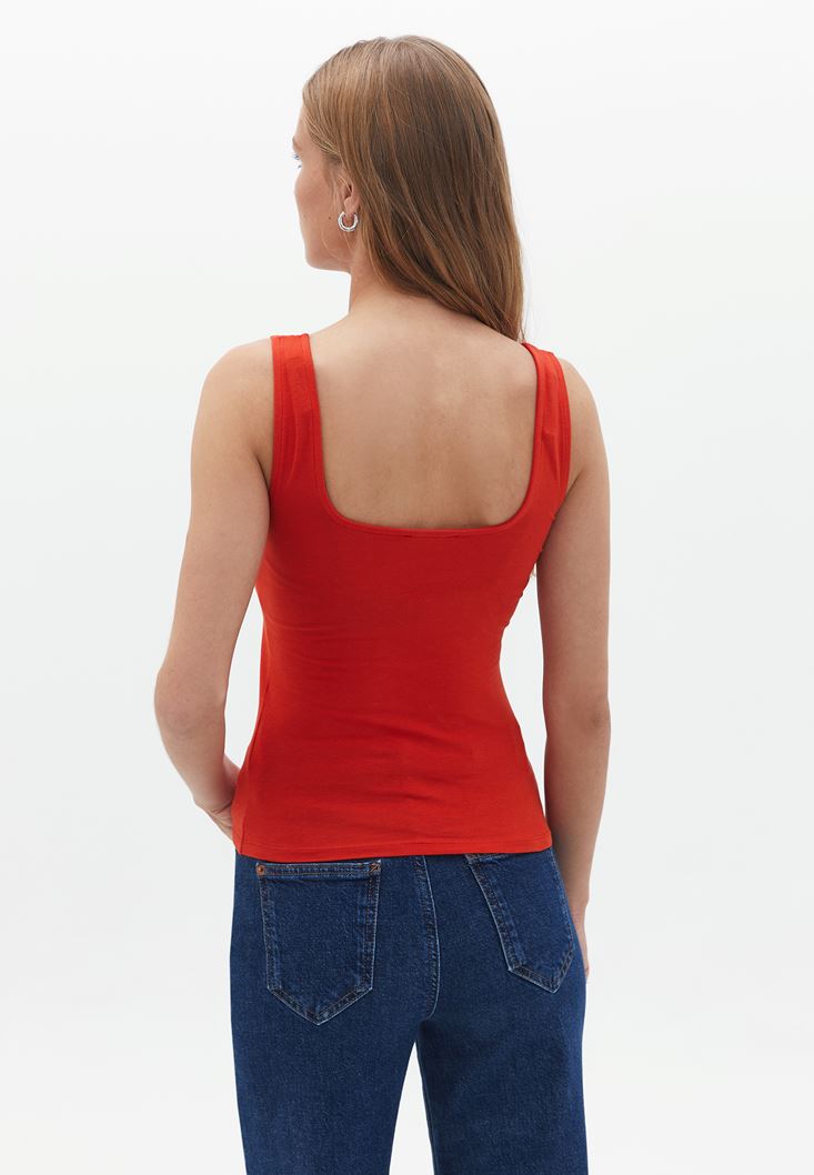 • Bayan Kırmızı Pamuklu Kare Yaka Atlet