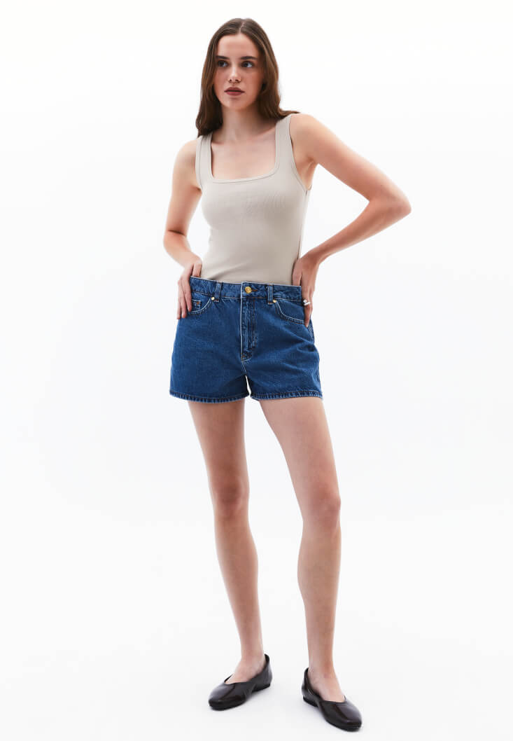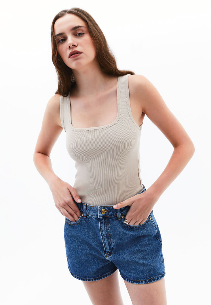 • Bayan Bej Pamuklu Kare Yaka Atlet