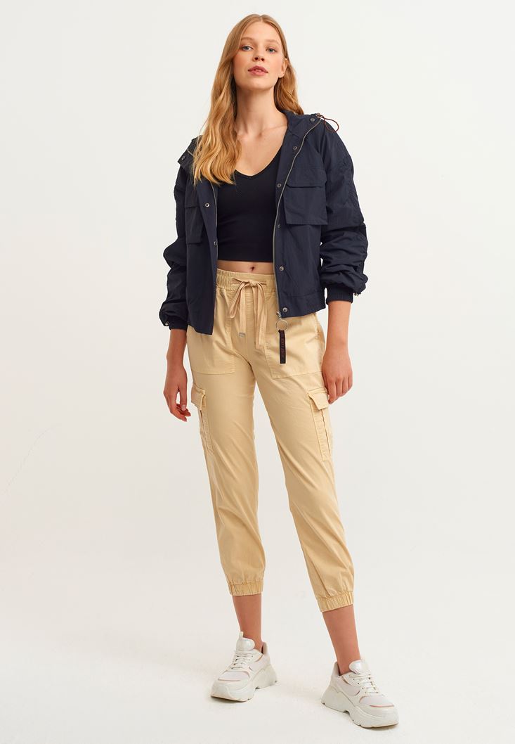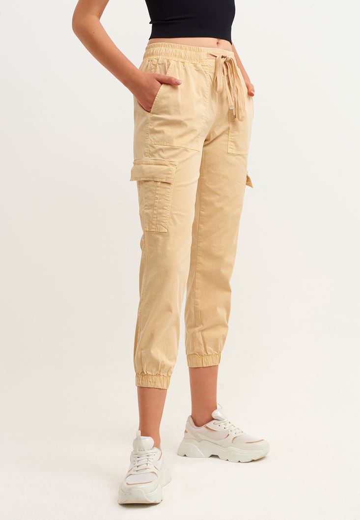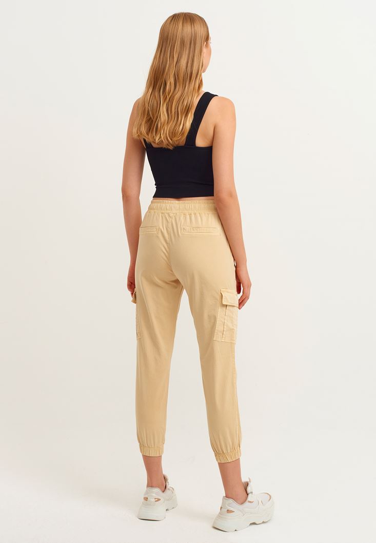 • Bayan Bej Pamuklu Kargo Jogger Pantolon