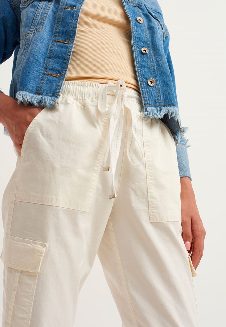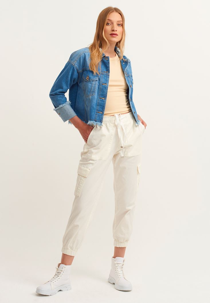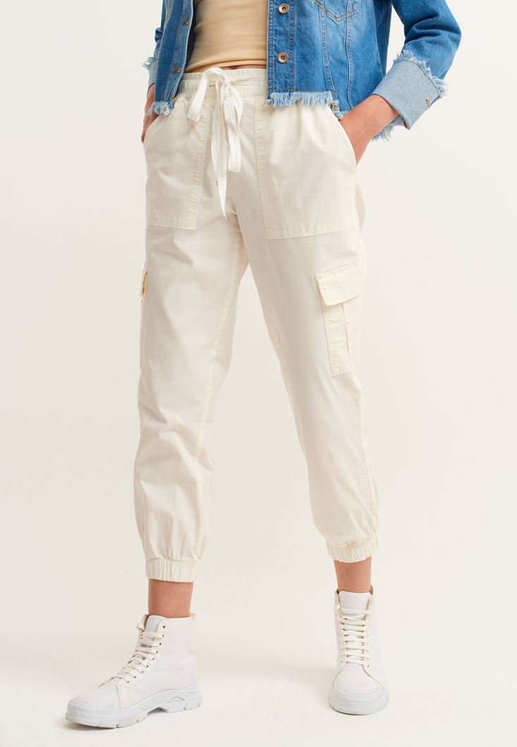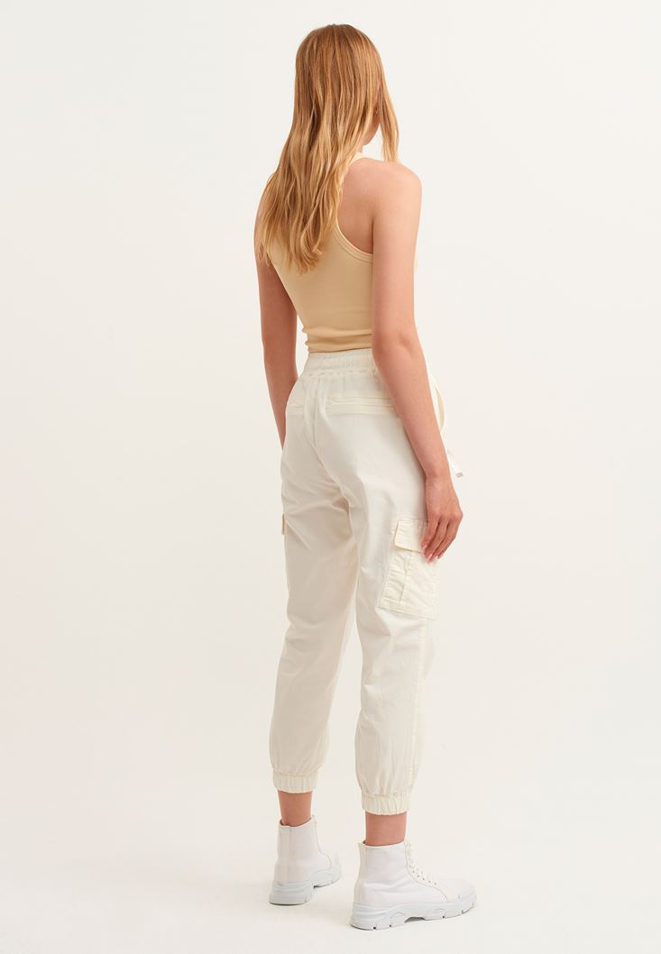 • Bayan Krem Pamuklu Kargo Jogger Pantolon