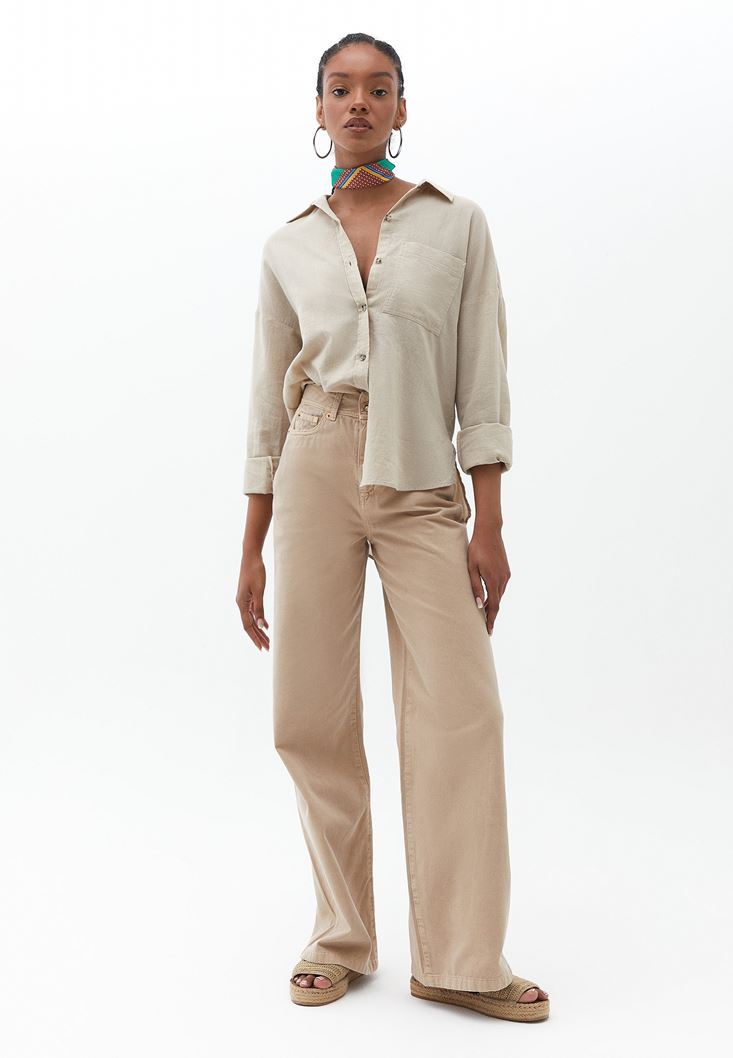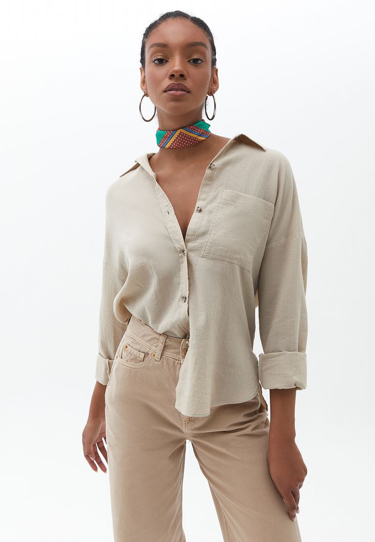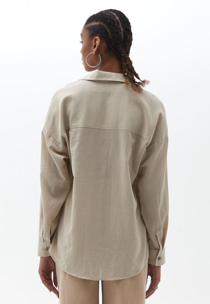 • Bayan Bej Pamuklu Loose-Fit Gömlek