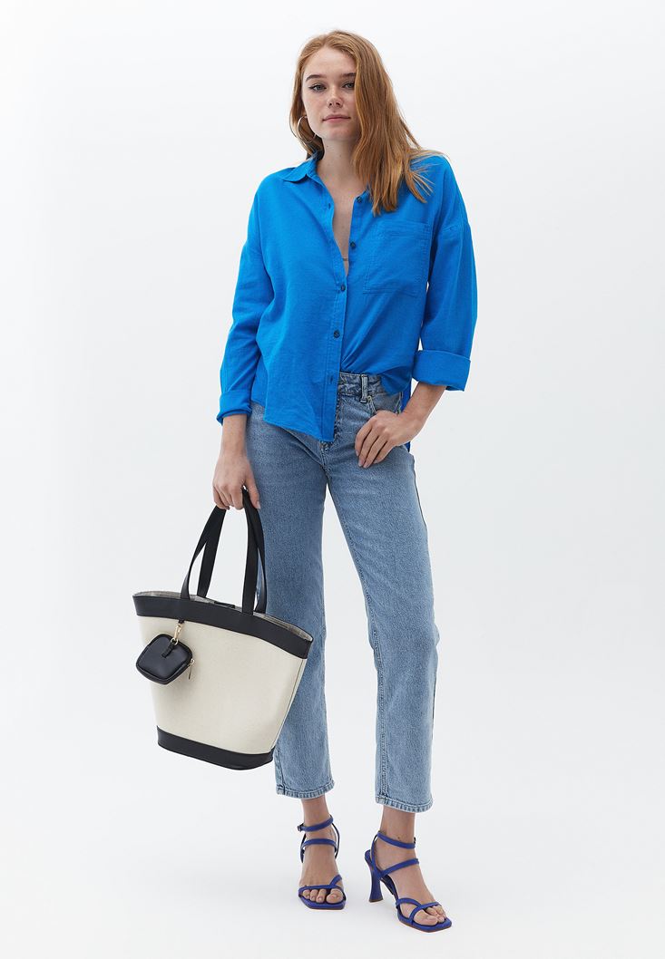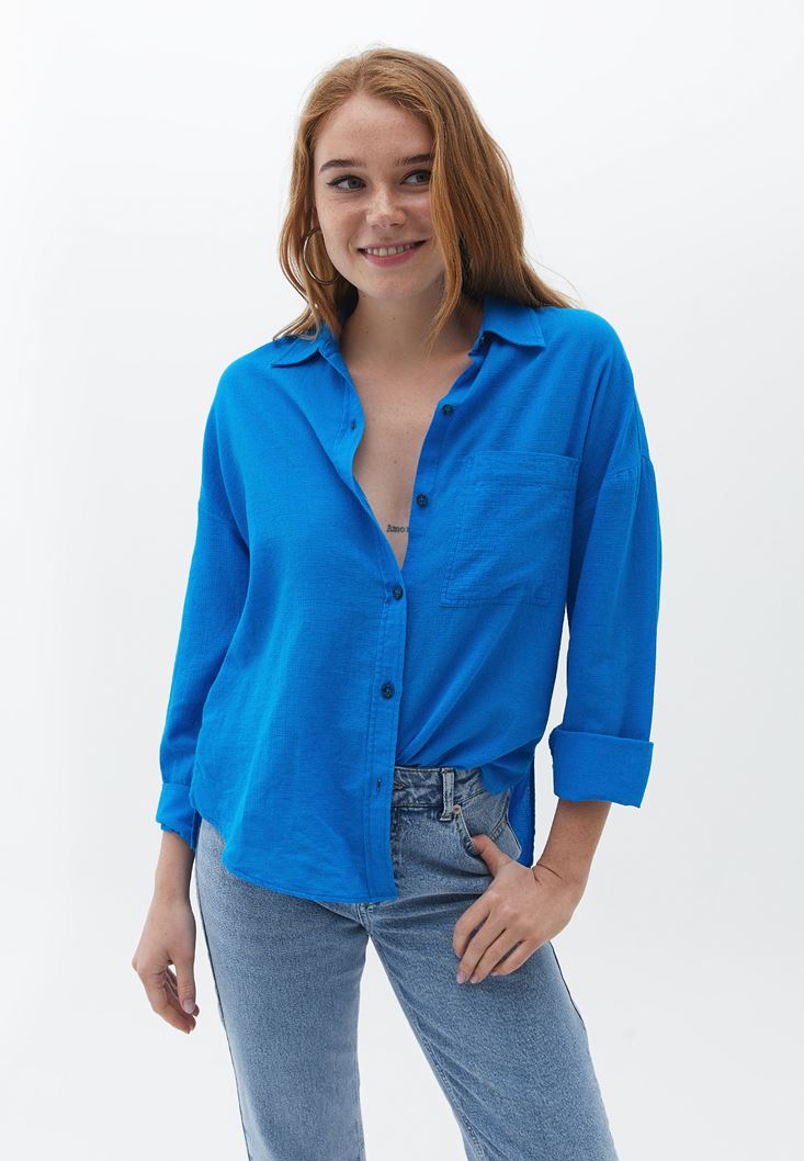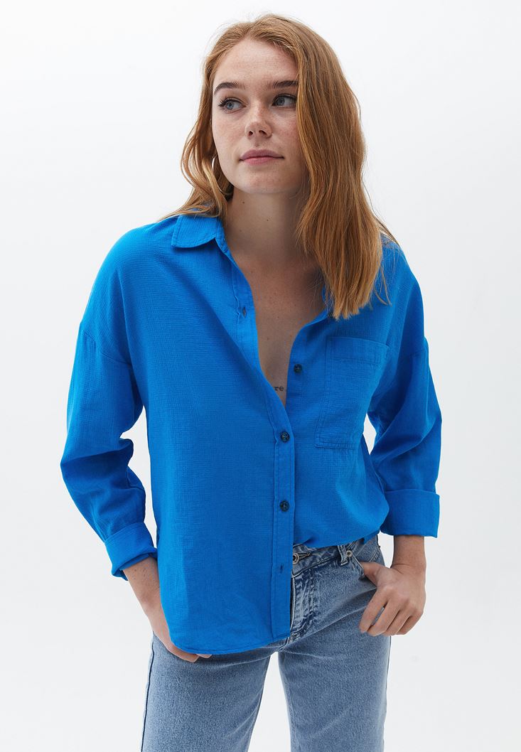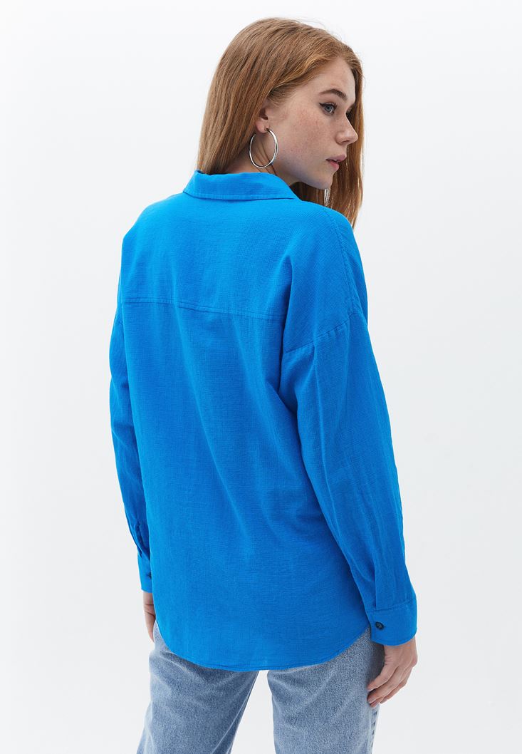 Mavi Pamuklu Loose-Fit Gömlek