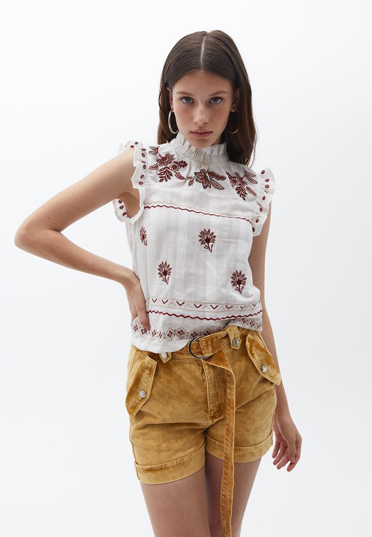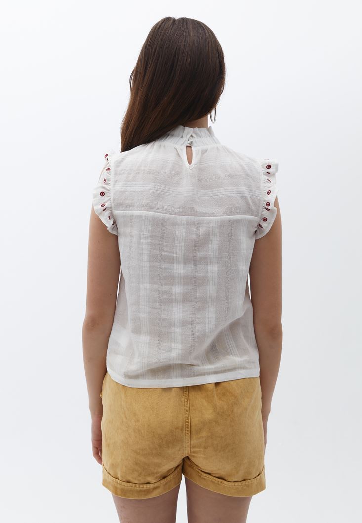 • Bayan Krem Pamuklu Nakış Detaylı Bluz