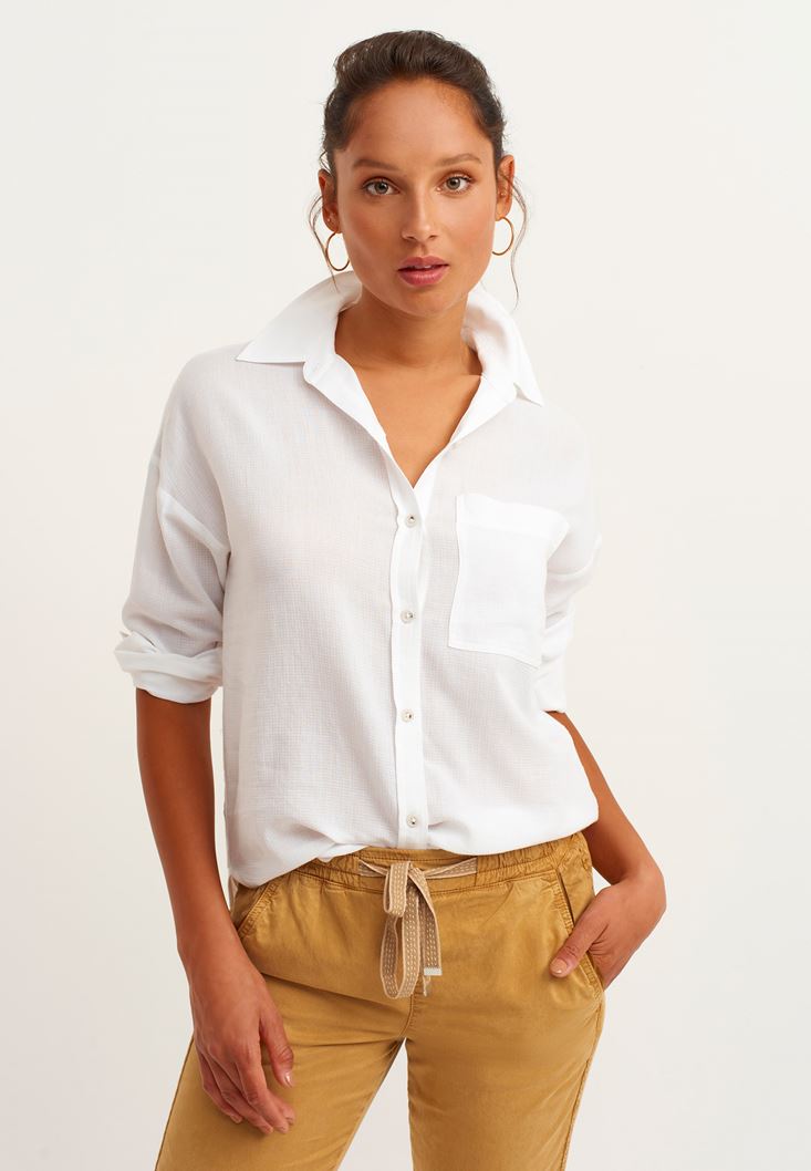 • Bayan Beyaz Pamuklu Oversize Gömlek