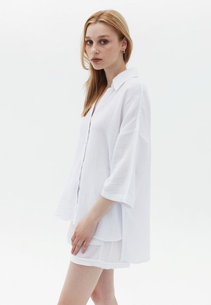 • Bayan Beyaz Pamuklu Oversize Gömlek