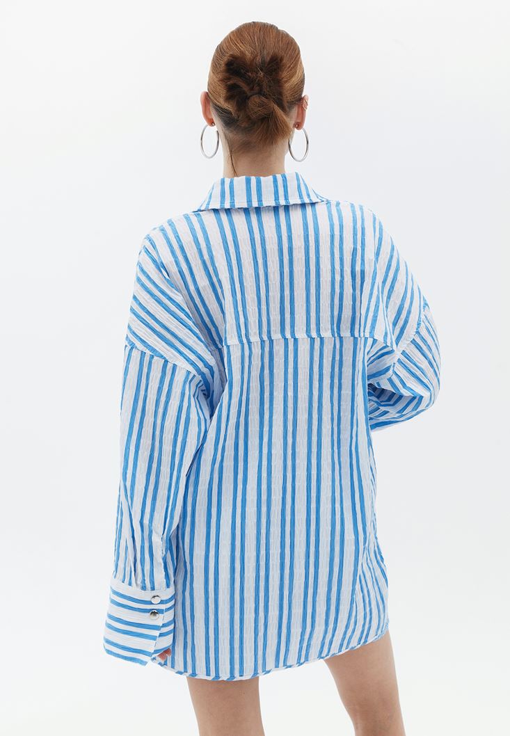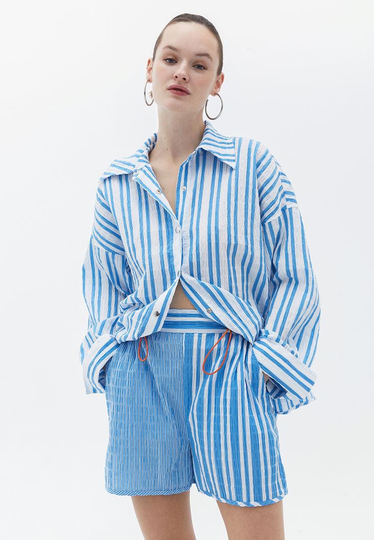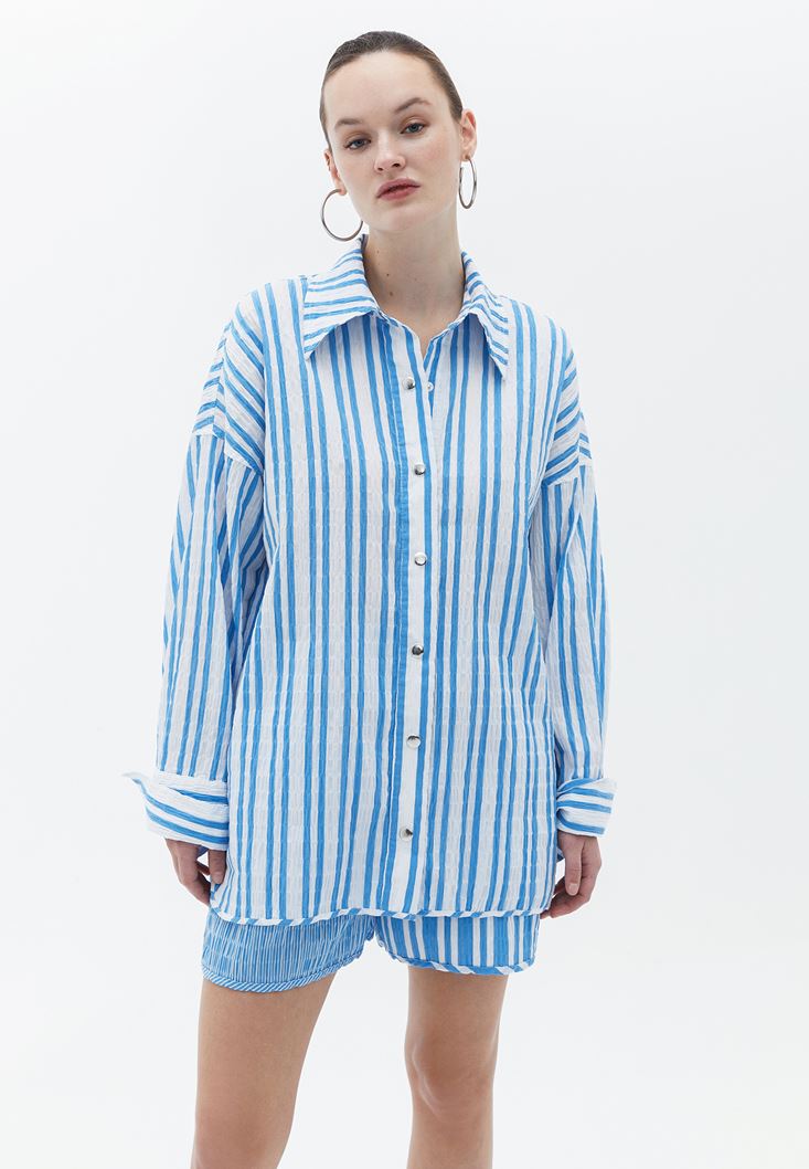 • Bayan Çok Renkli Pamuklu Oversize Gömlek