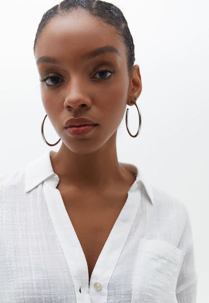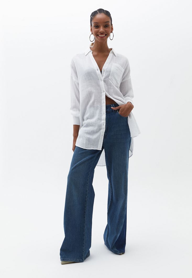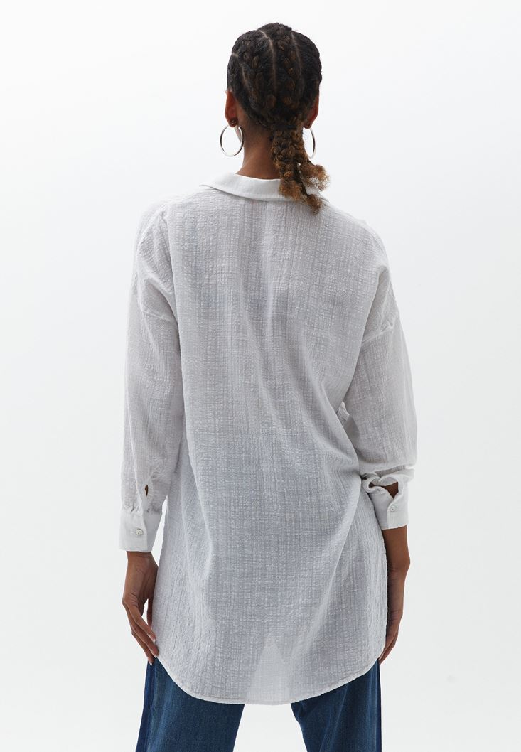 Beyaz Pamuklu Oversize Gömlek