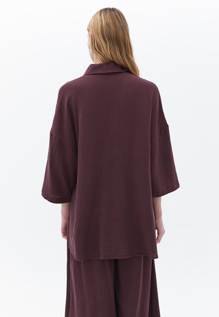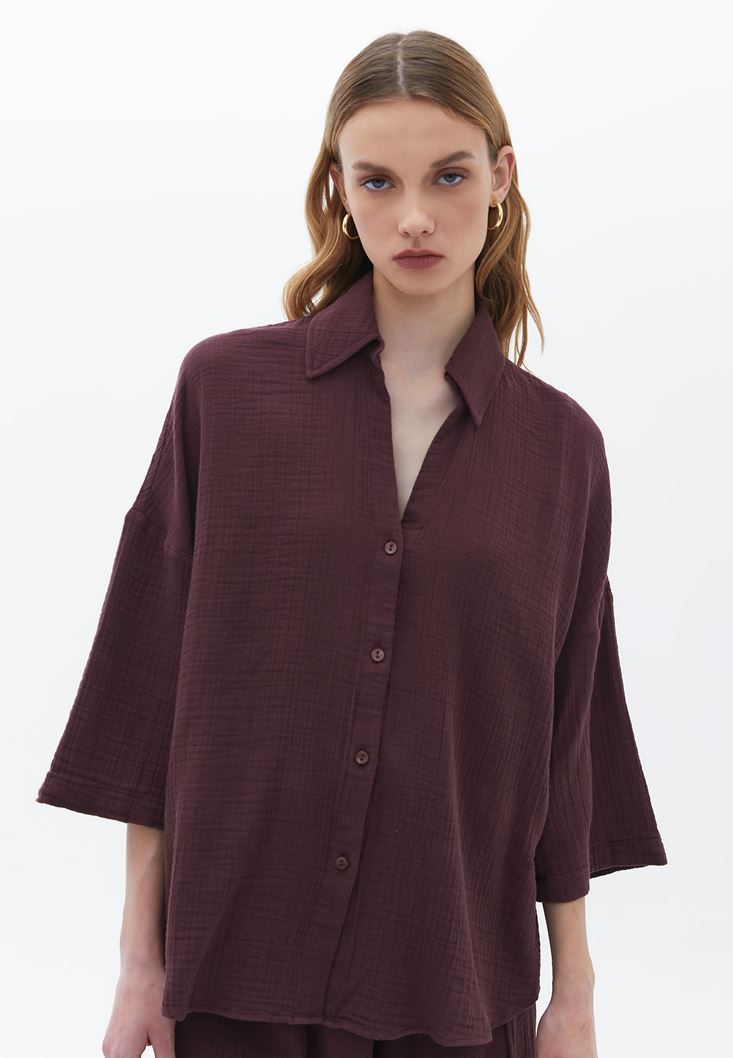 • Bayan Bordo Pamuklu Oversize Gömlek