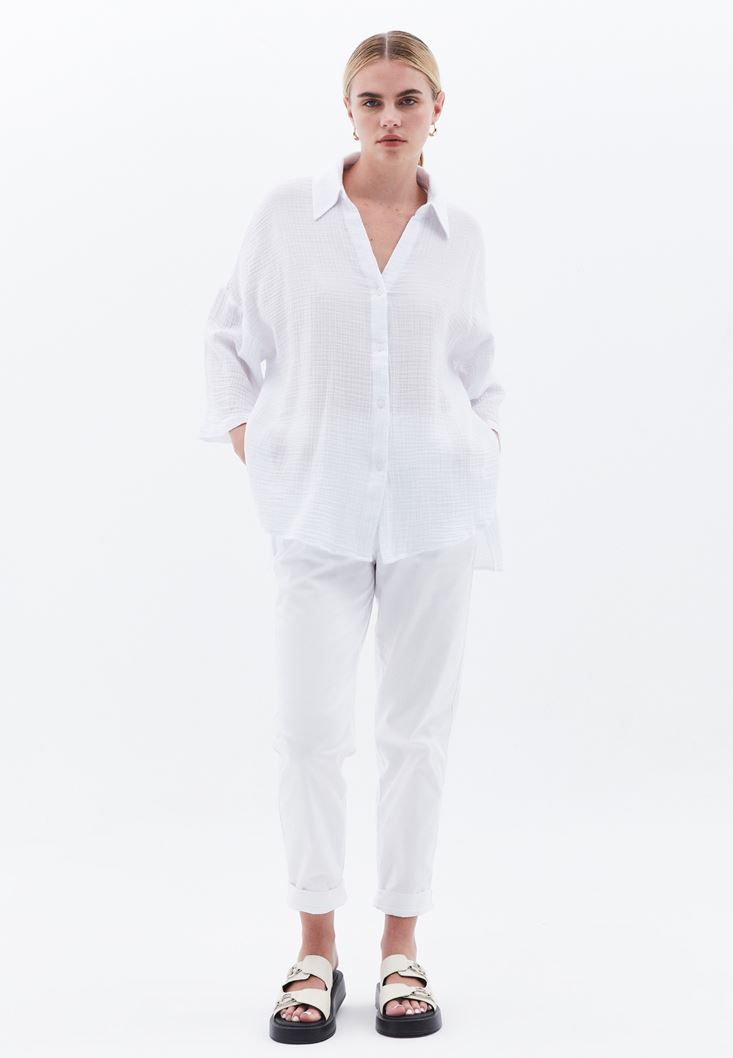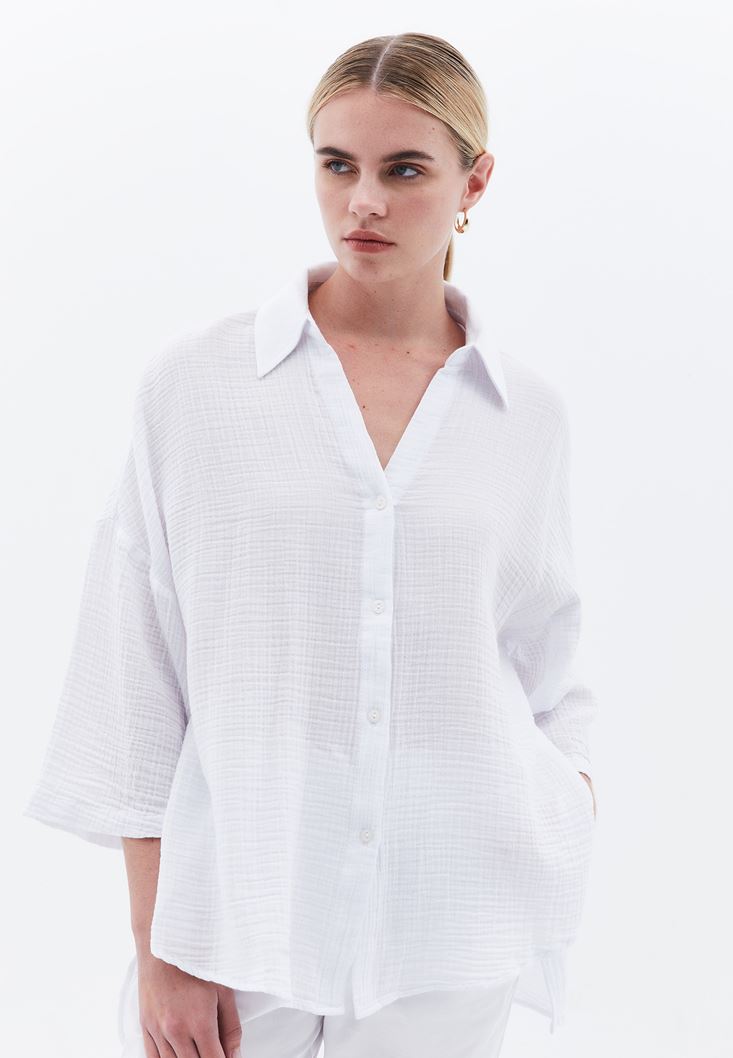 • Bayan Beyaz Pamuklu Oversize Gömlek