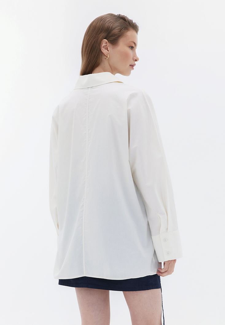 Bej Pamuklu Oversize Gömlek