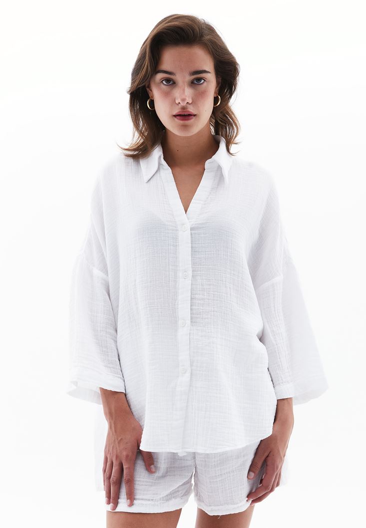 • Bayan Beyaz Pamuklu Oversize Gömlek
