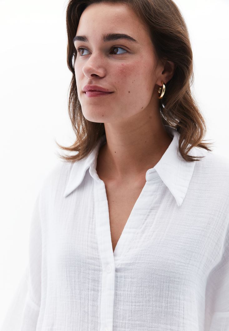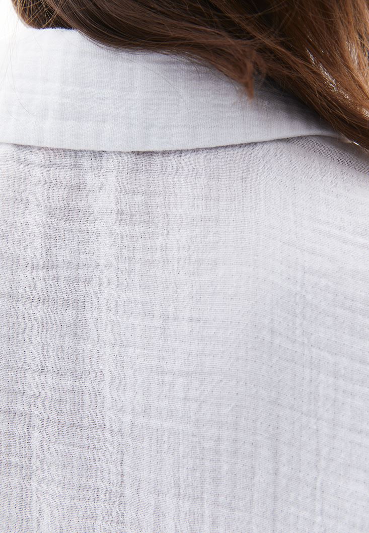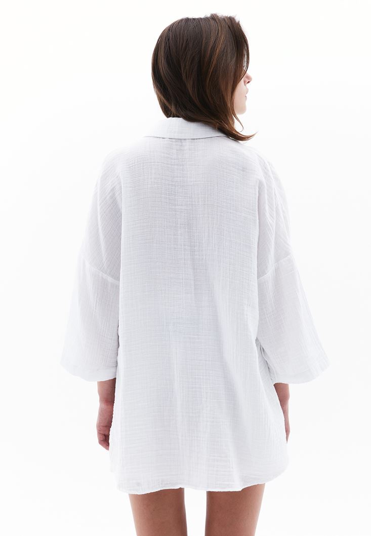 %100 pamuklu doğal doku, bedenden uzak oversize fit, yarım kollu, düğme kapamalı, önü kısa arkası uzun asimetrik kesim.