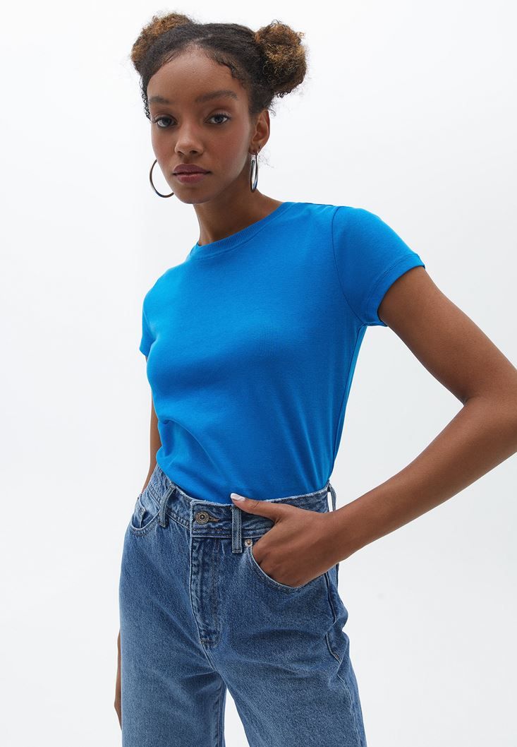 Pamuklu Sıfır Yaka Tişört ve Pantolon Kombini