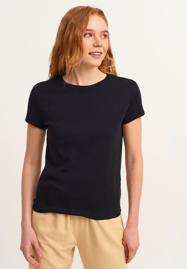 • Bayan Siyah Pamuklu Sıfır Yaka Tişört