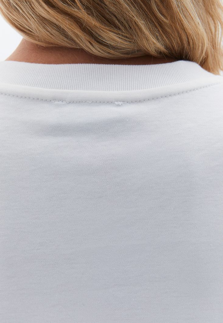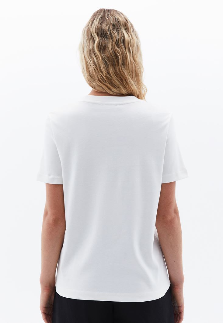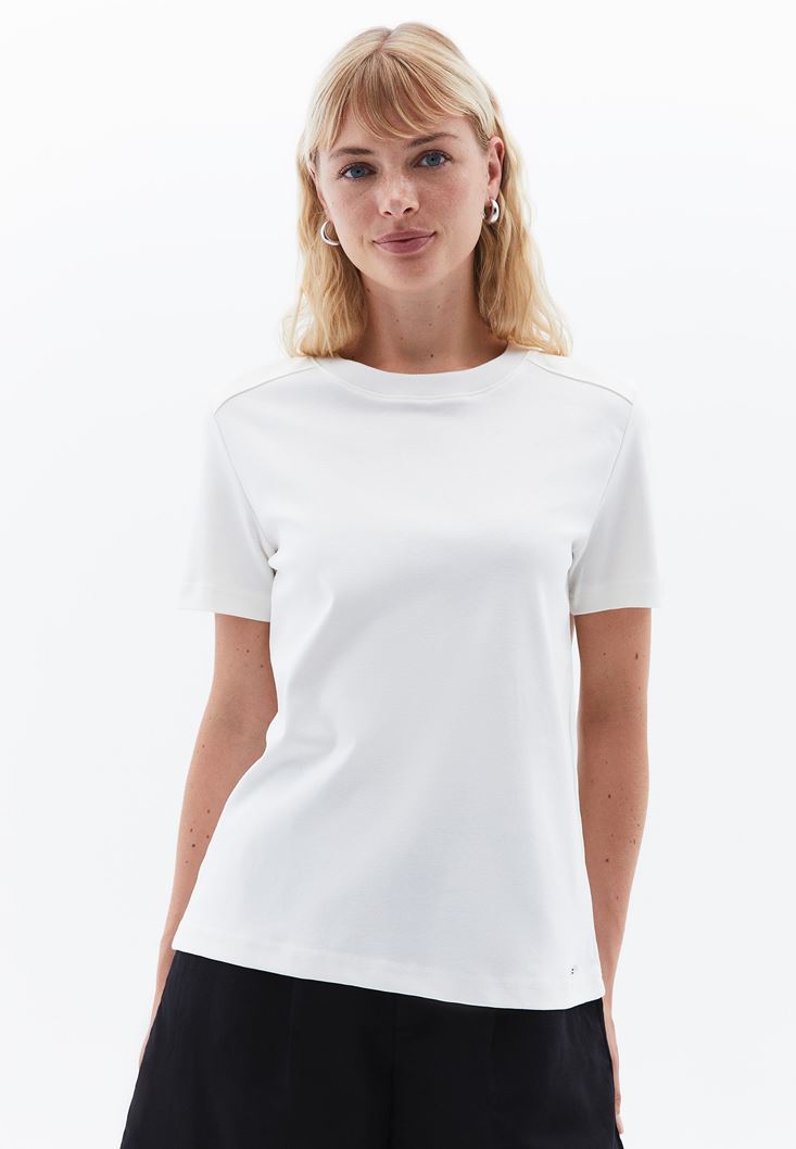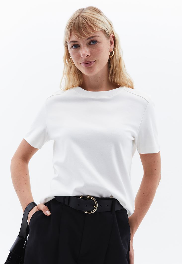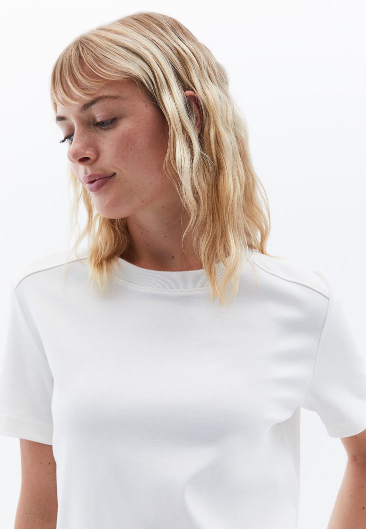 Krem Pamuklu Sıfır Yaka Tişört