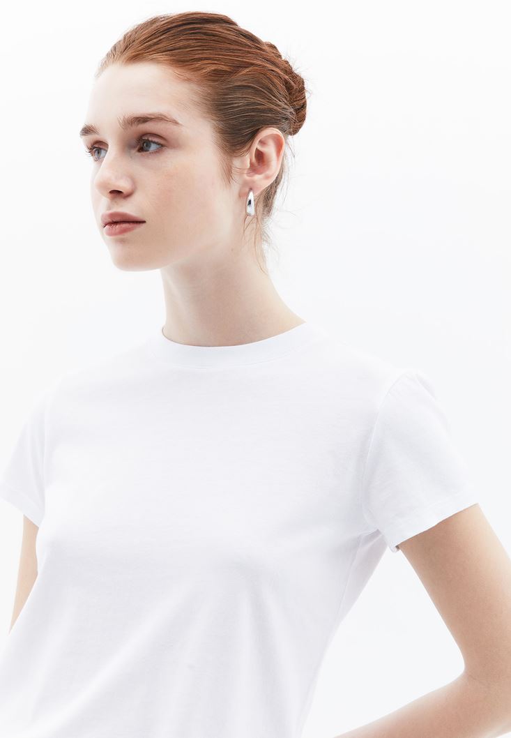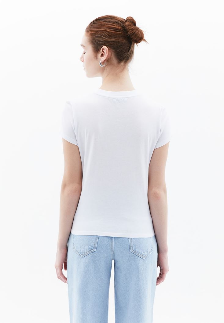• Bayan Beyaz Pamuklu Sıfır Yaka Tişört