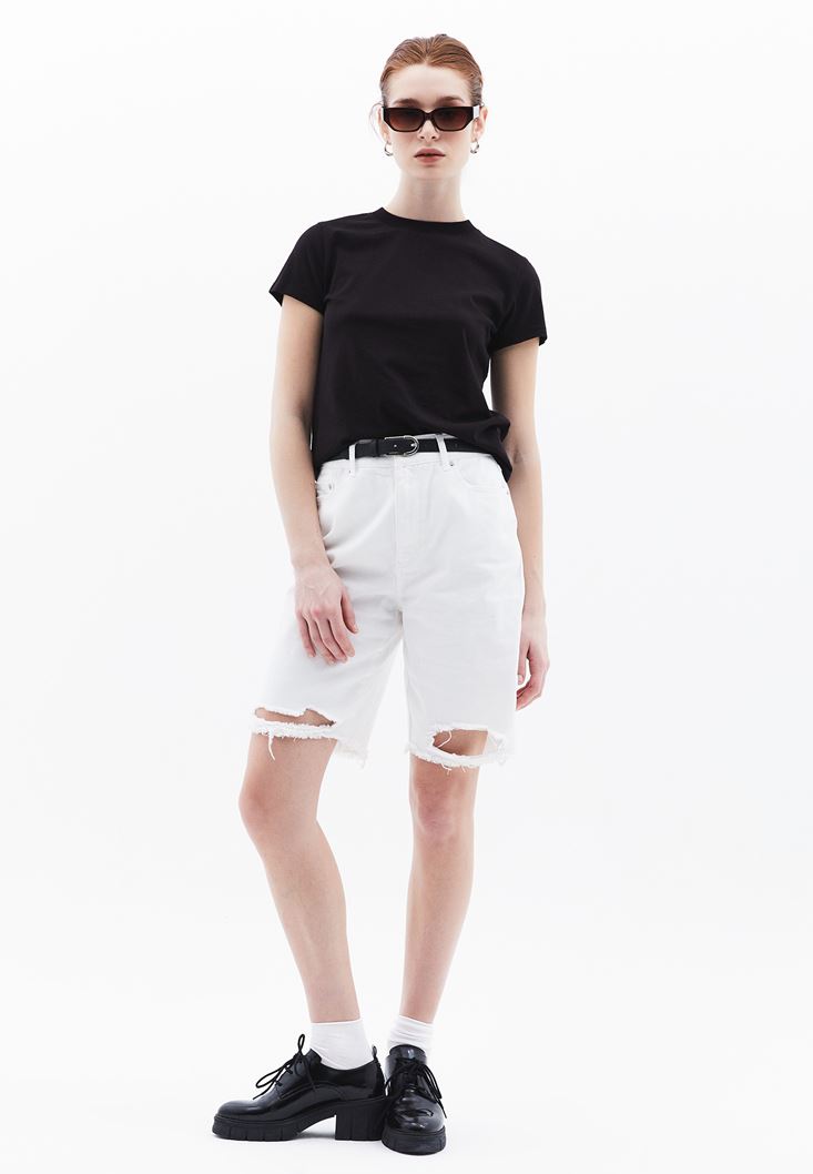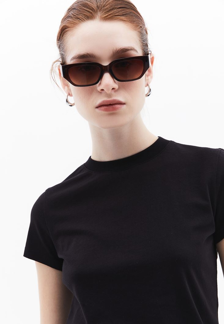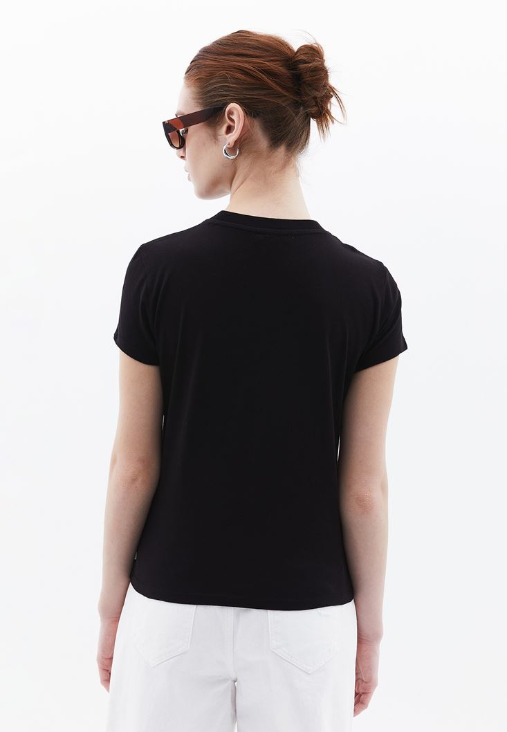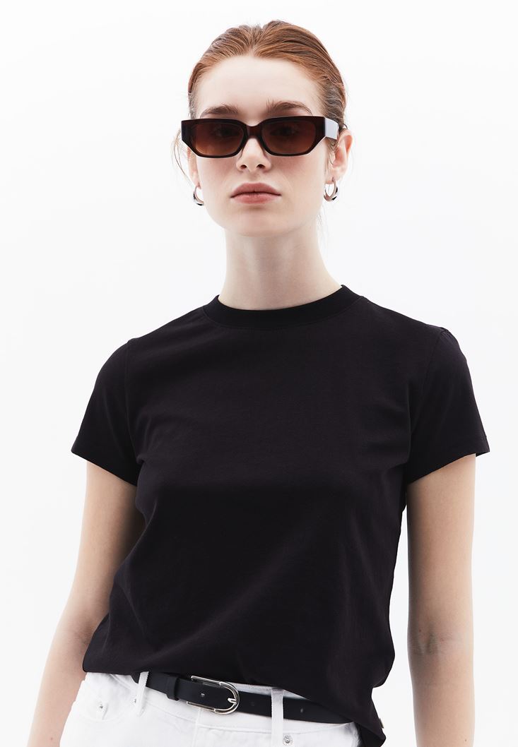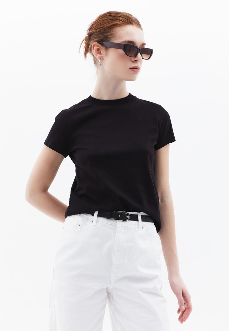 • Bayan Siyah Pamuklu Sıfır Yaka Tişört