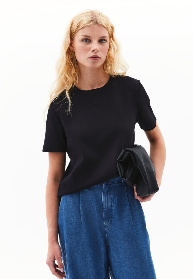 • Bayan Siyah Pamuklu Sıfır Yaka Tişört