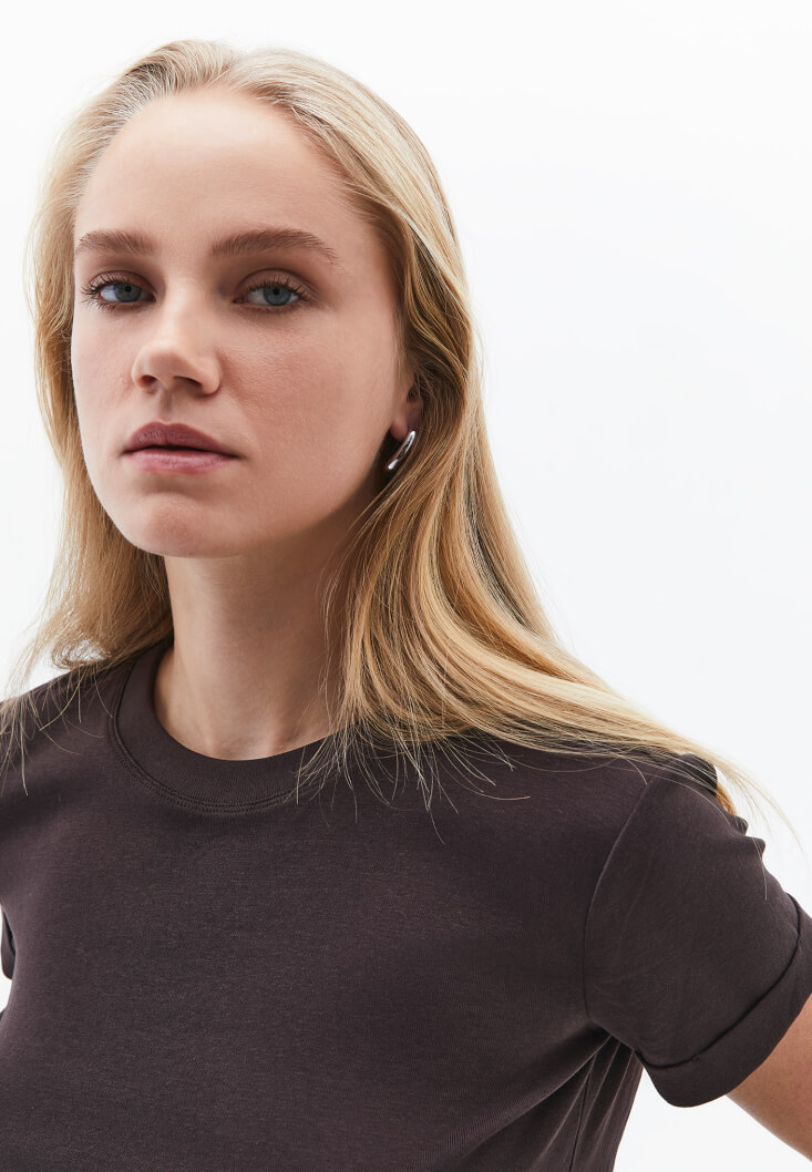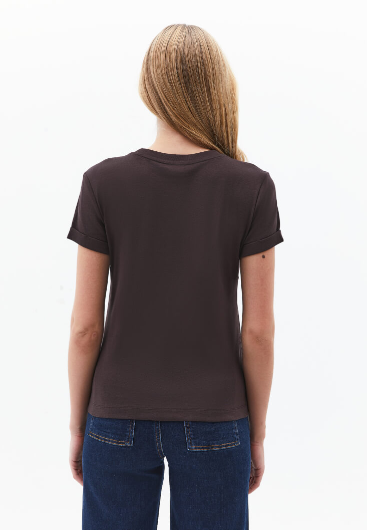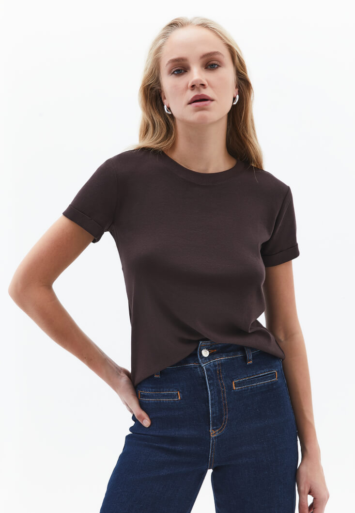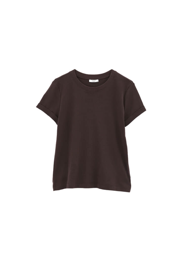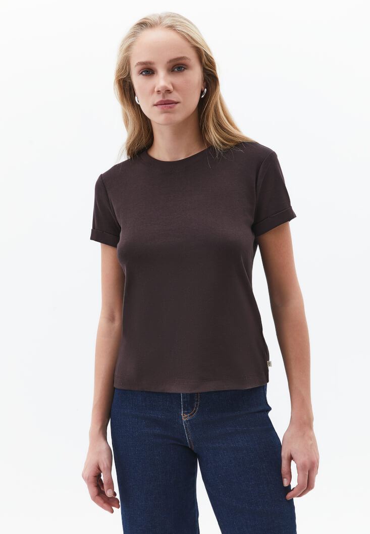 • Bayan Kahverengi Pamuklu Sıfır Yaka Tişört